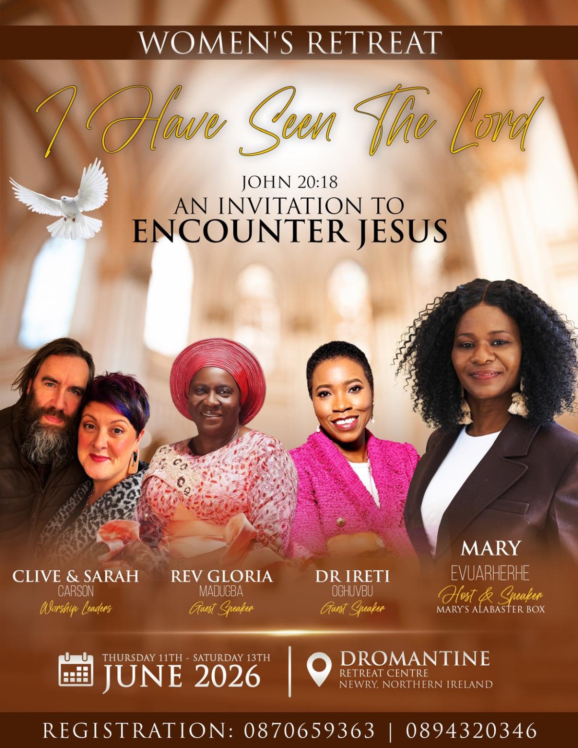 upcoming events Mary’s Alabaster Box Meetings 2026 WOMEN’S RETREAT: THE WOMAN AT THE FEET OF JESUS.JUNE 2026VENUE: DROMANTINE RETREAT & CONFERENCE CENTRE, 96 GLEN ROAD, NEWRY BY34 1RH Contact us